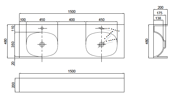 Formline 200 1500 Moulded Benchtop Basin
