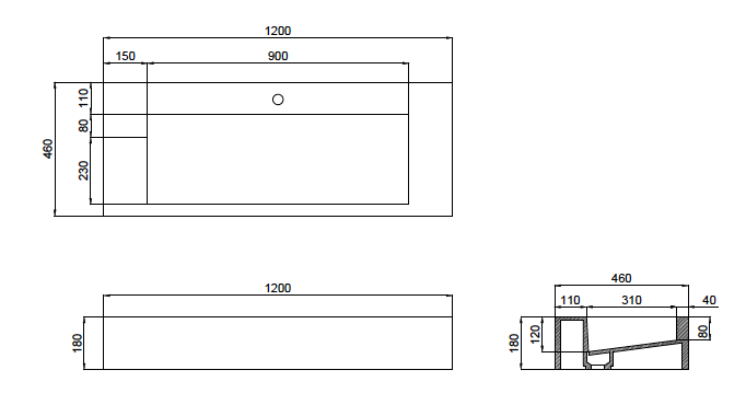 The Ramp Trough 180 Basin is designed from a solid composite stone. It is designed with an option to have bench mounted faucets or off the wall options. It features a hidden waste. The ramp basin is supported by supplied wall mounted brackets. The ramp basin has a 180mm Apron surround. It features a deeper trough designed ramp basin.