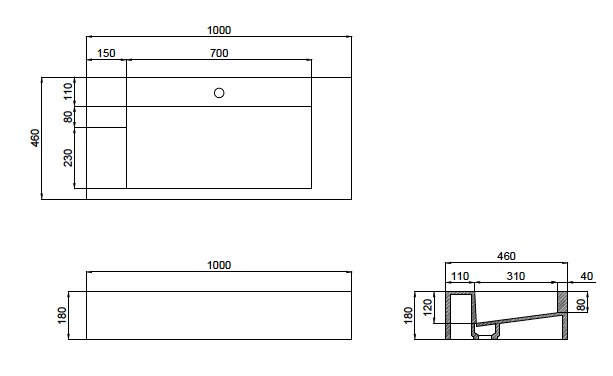 The Ramp Trough 180 Basin is designed from a solid composite stone. It is designed with an option to have bench mounted faucets or off the wall options. It features a hidden waste. The ramp basin is supported by supplied wall mounted brackets. The ramp basin has a 180mm Apron surround. It features a deeper trough designed ramp basin.